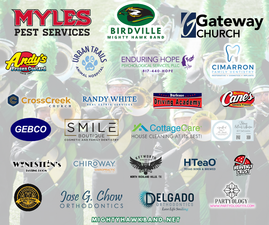 BIRDVILLE INDEPENDENT SCHOOL DISTRICT log volunteer hours Consider donating to the band through our Amazon wishlist! These supplies will help us with our daily instruction as well as routine maintenance and rehearsal procedure! THANK YOUTo our 2025-26 community sponsors
